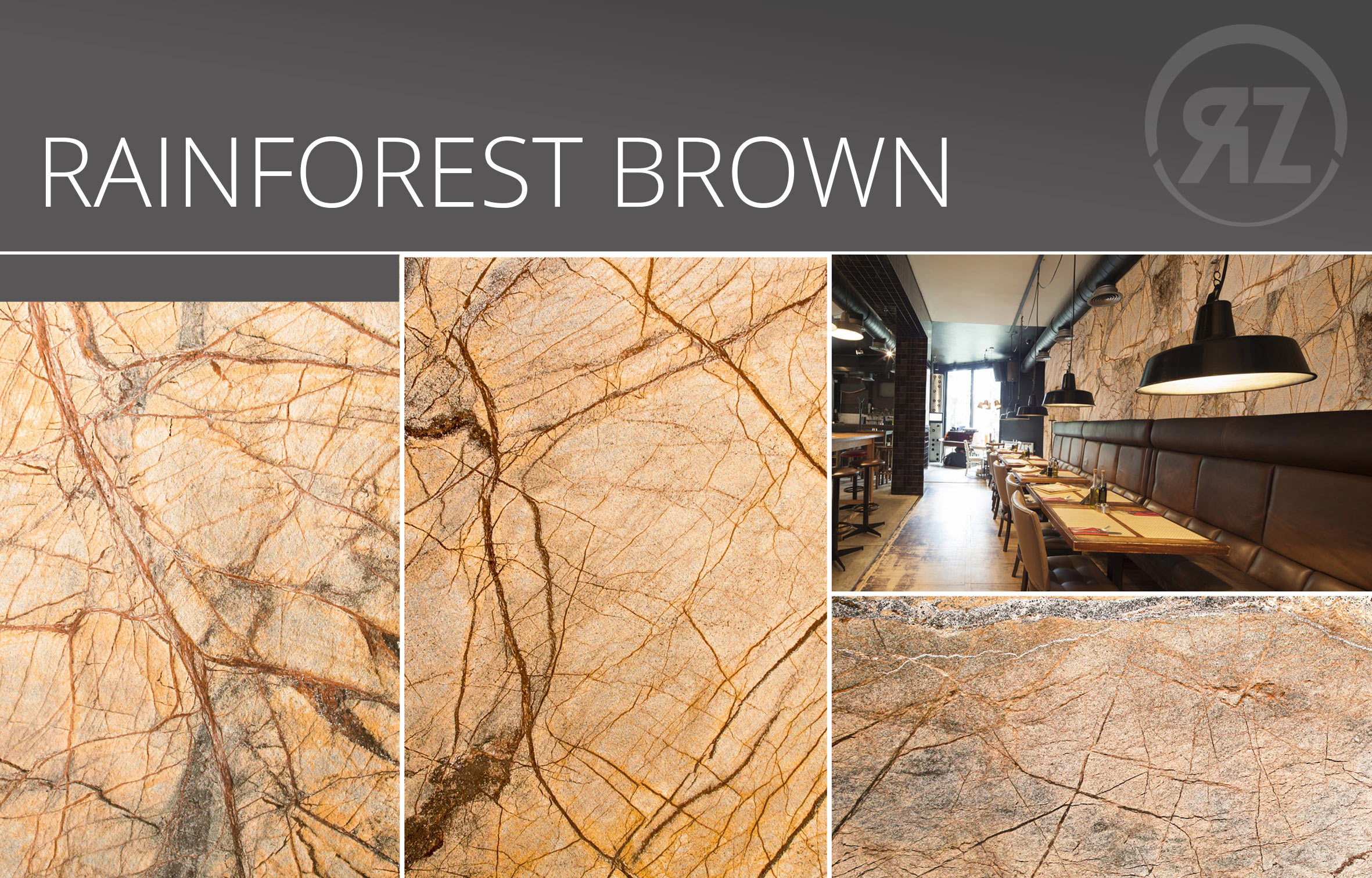 Rainforest Brown ist ein Marmordekor mit einer echten Steinoberfläche.